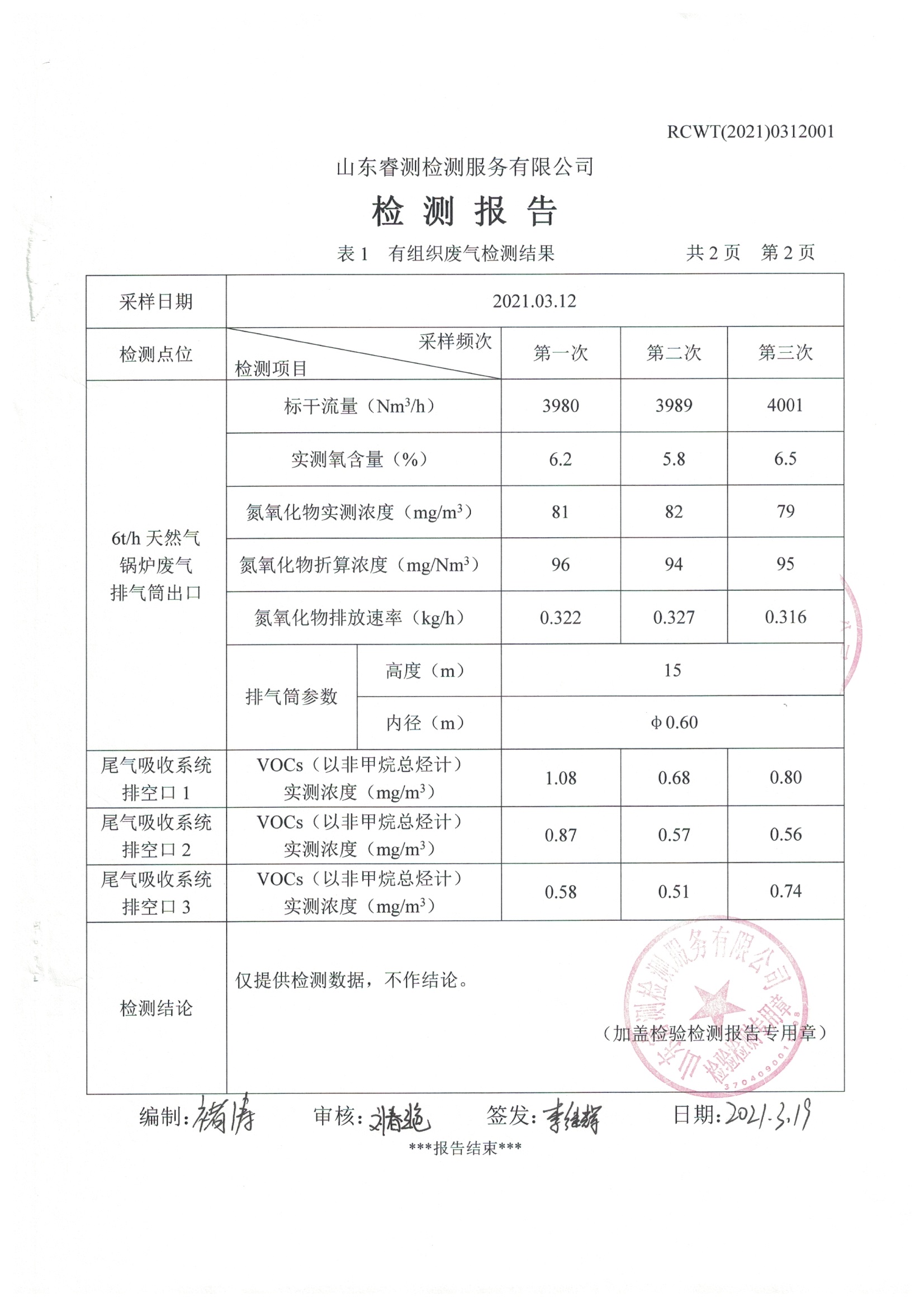 2021年4月份及季度自行檢測(cè)報(bào)告