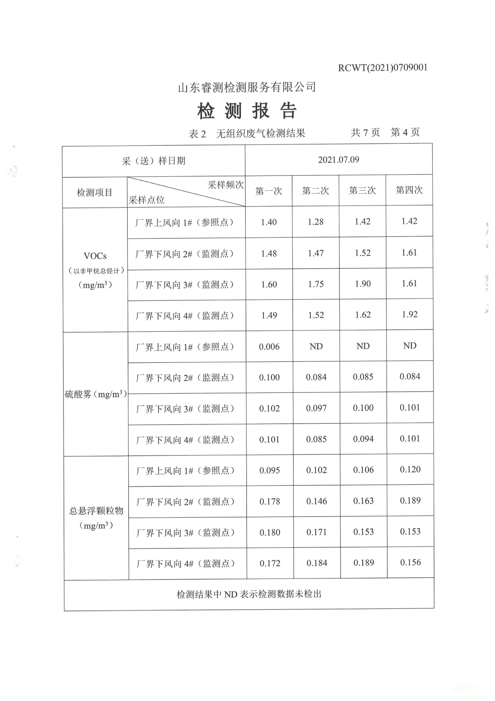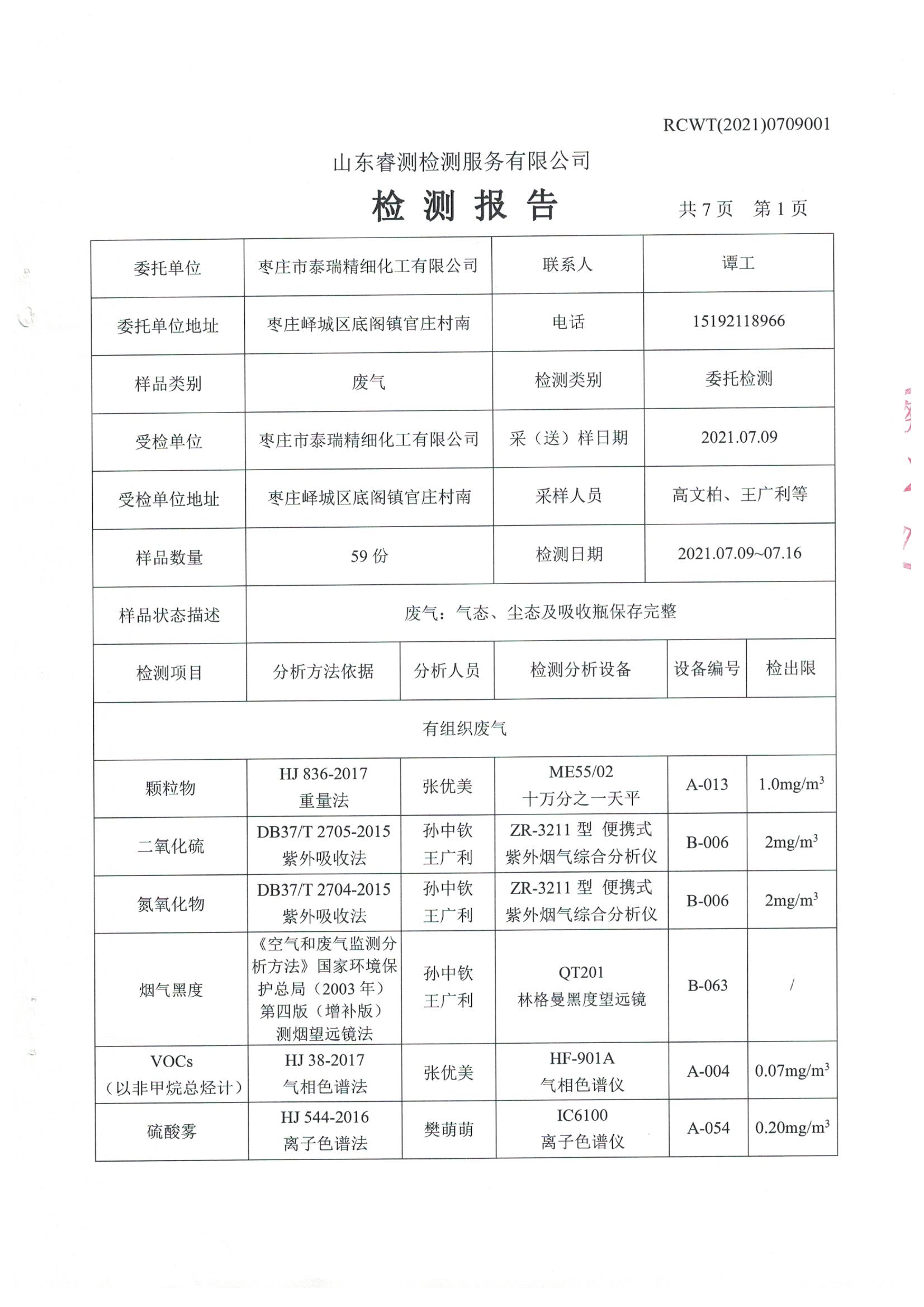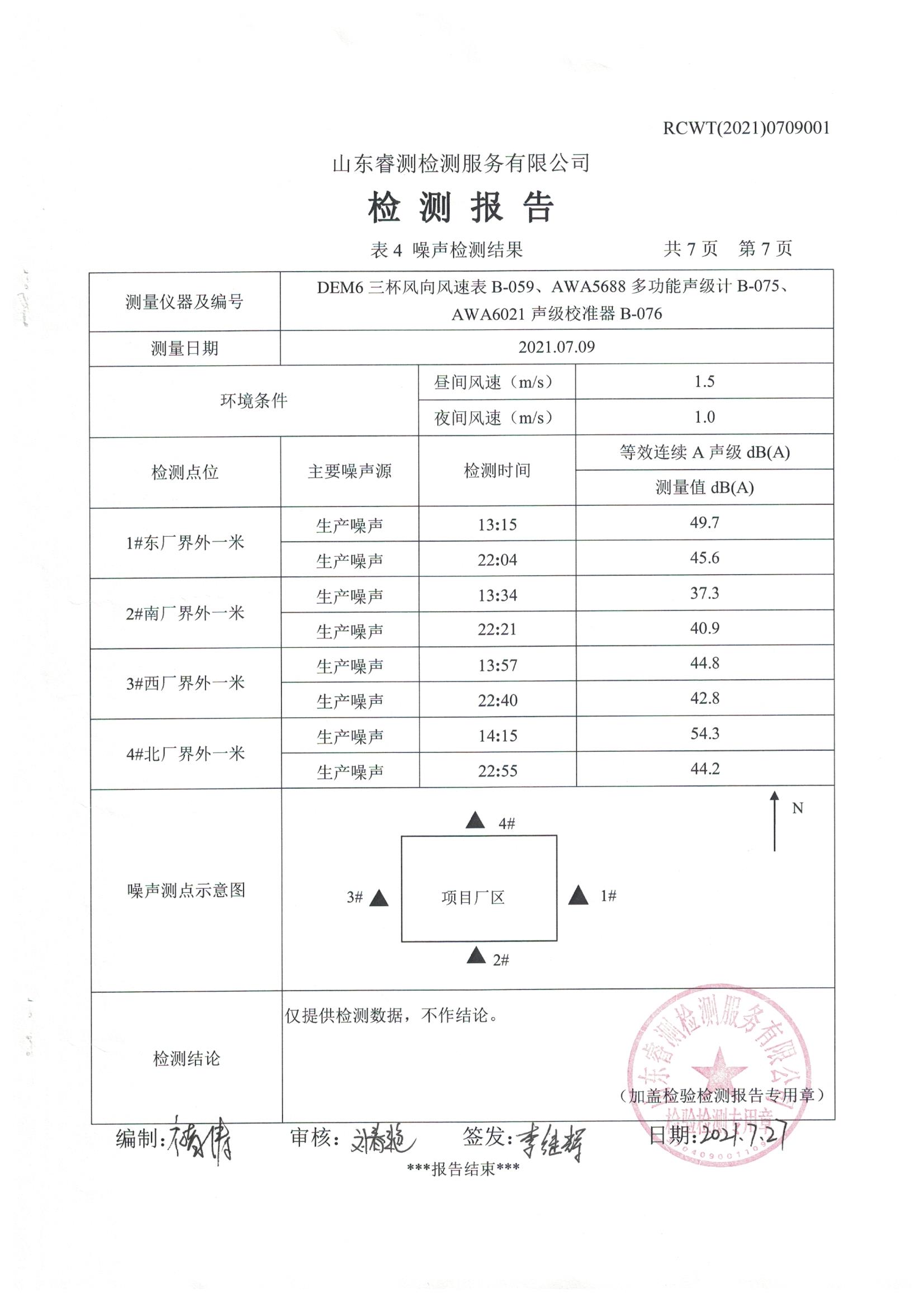 2021年7月份自行檢測報(bào)告