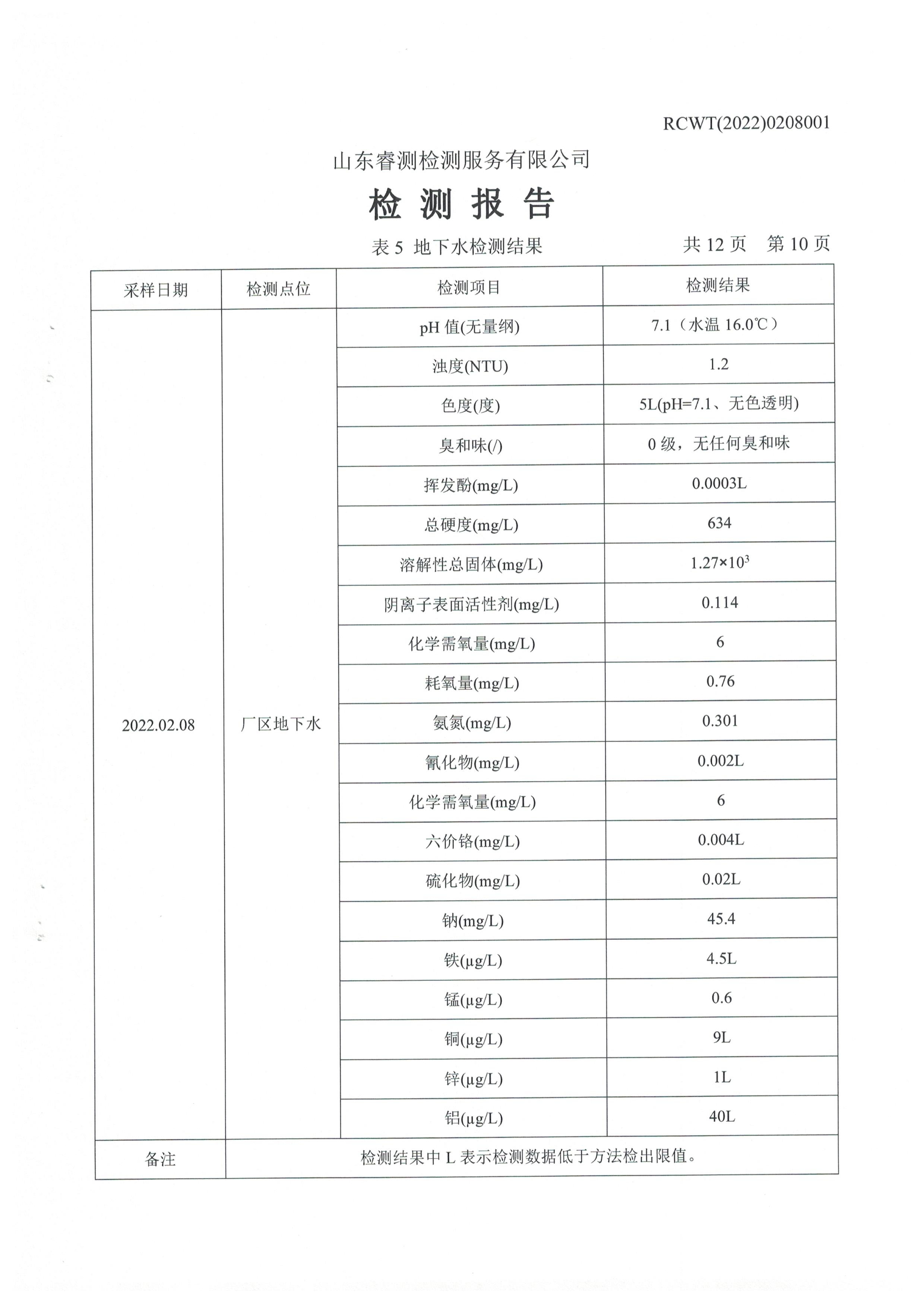 2022年2月份及第一季度自行檢測報告