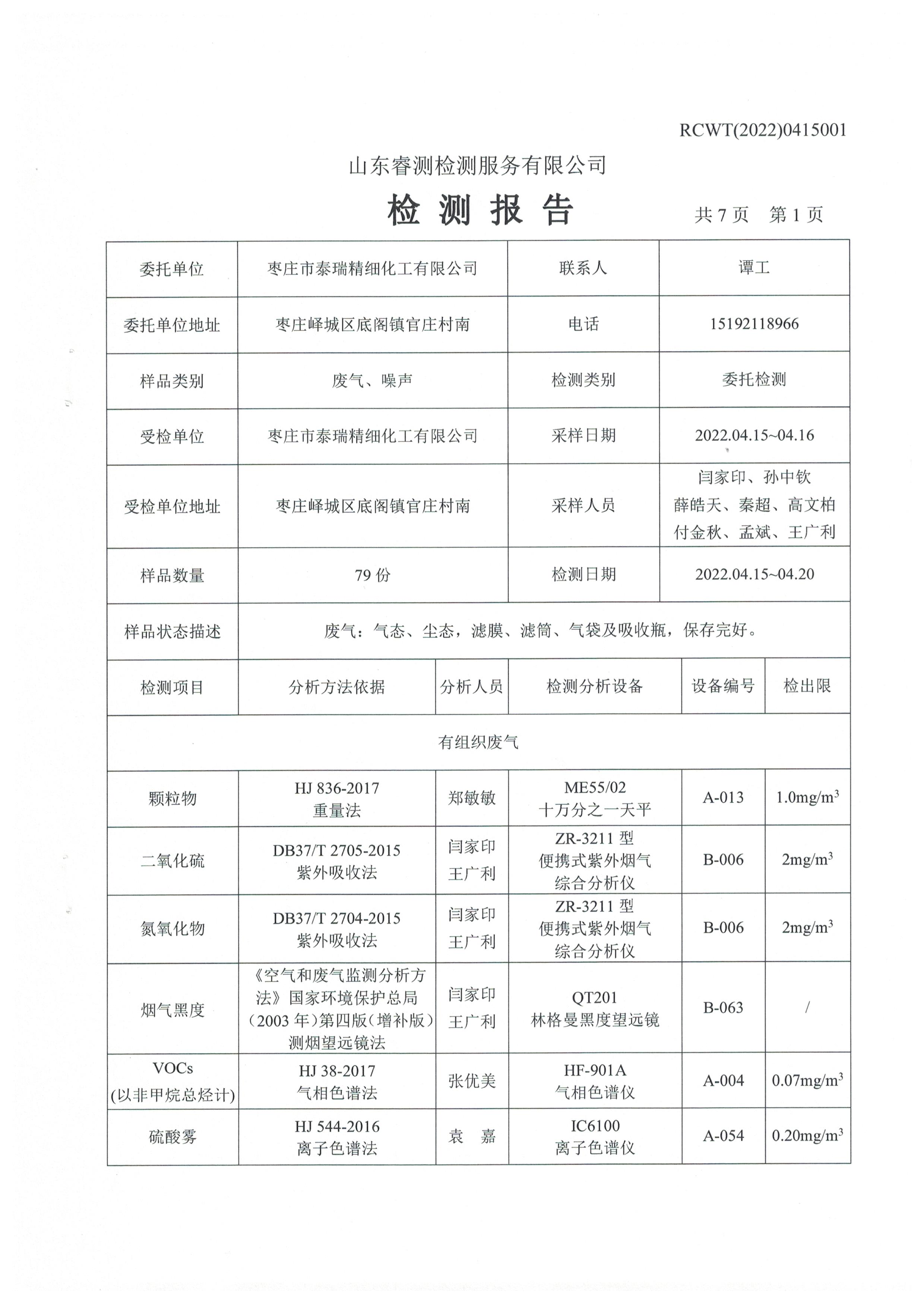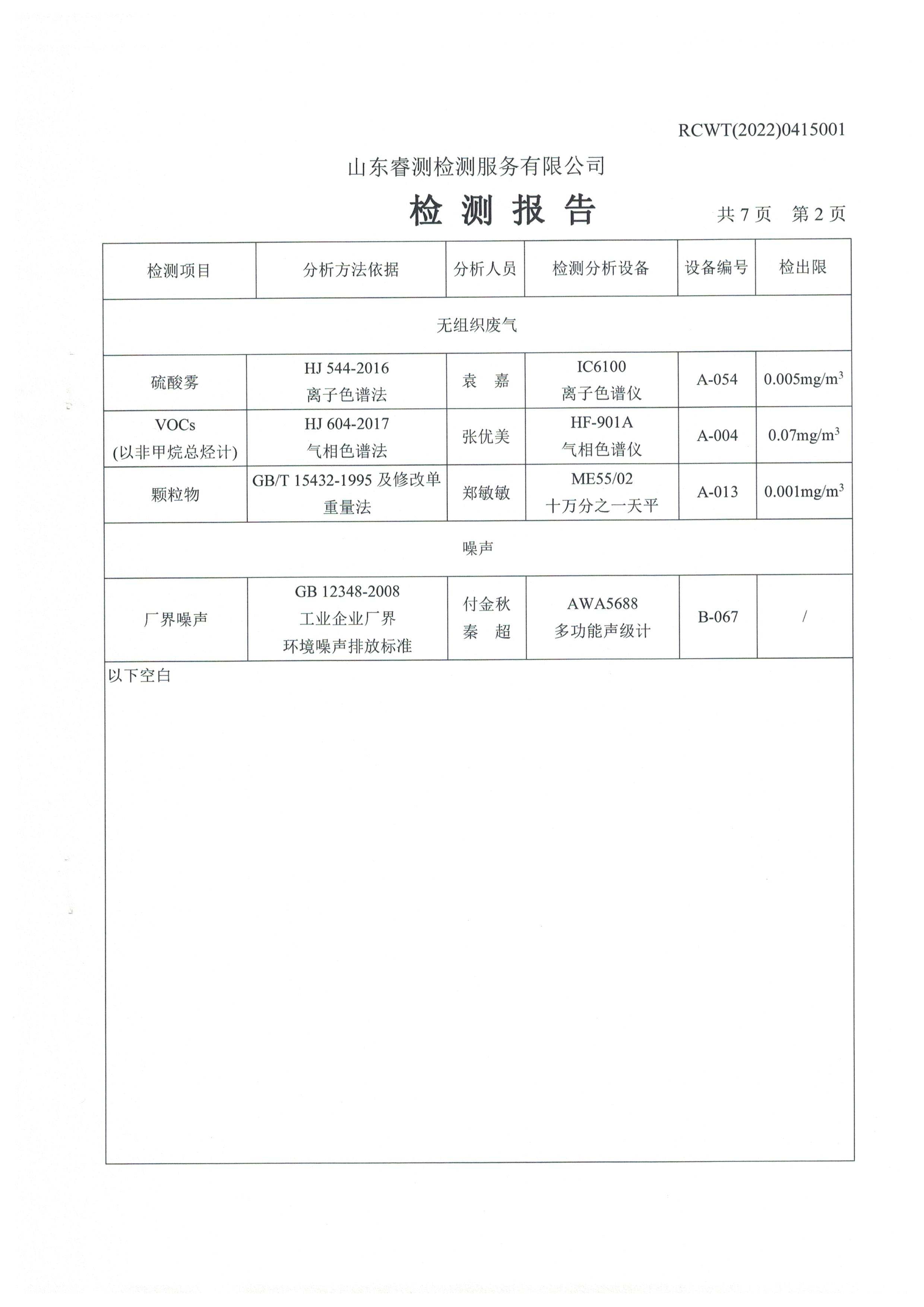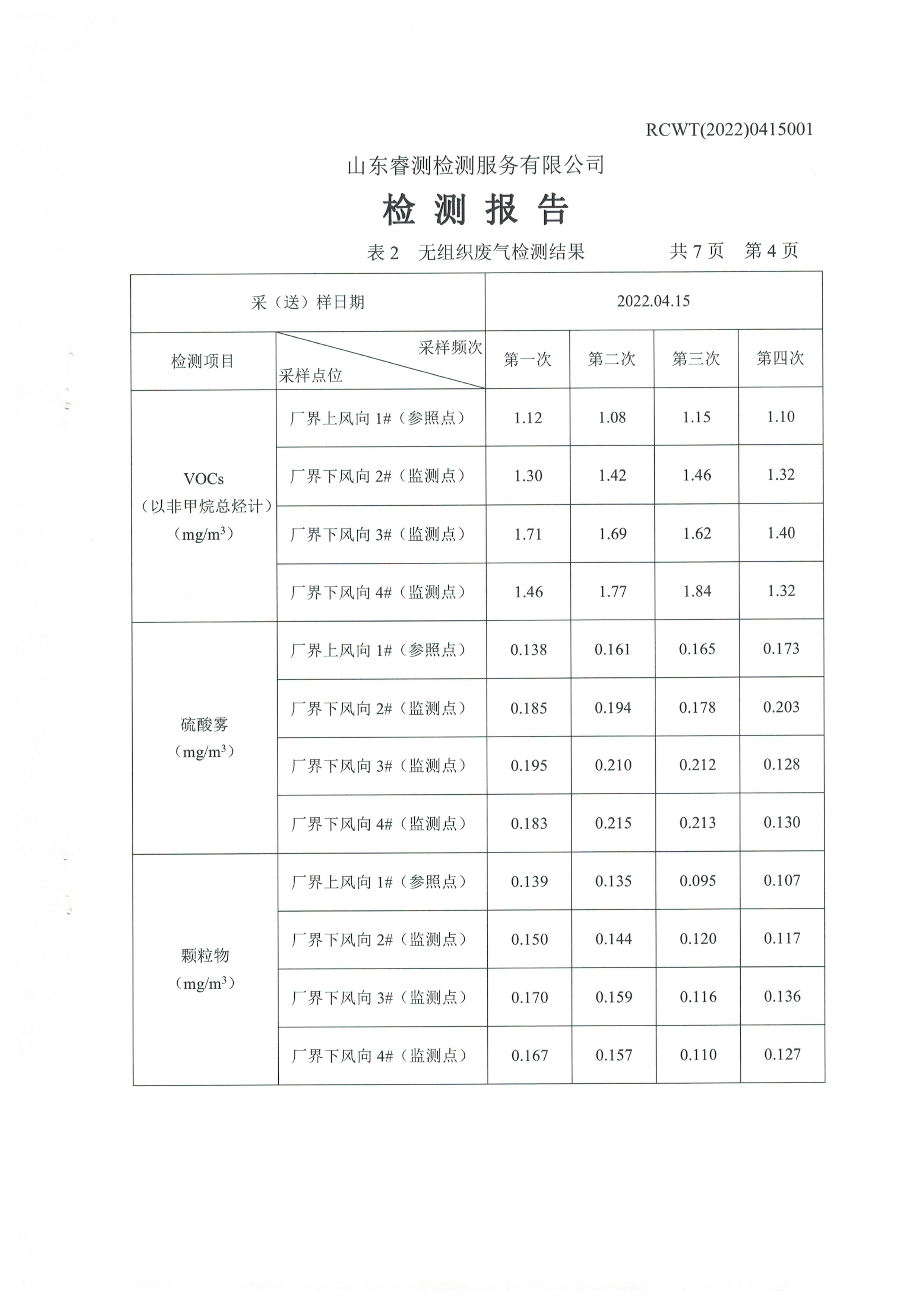 2022年第二季度(4月份)自行檢測報(bào)告
