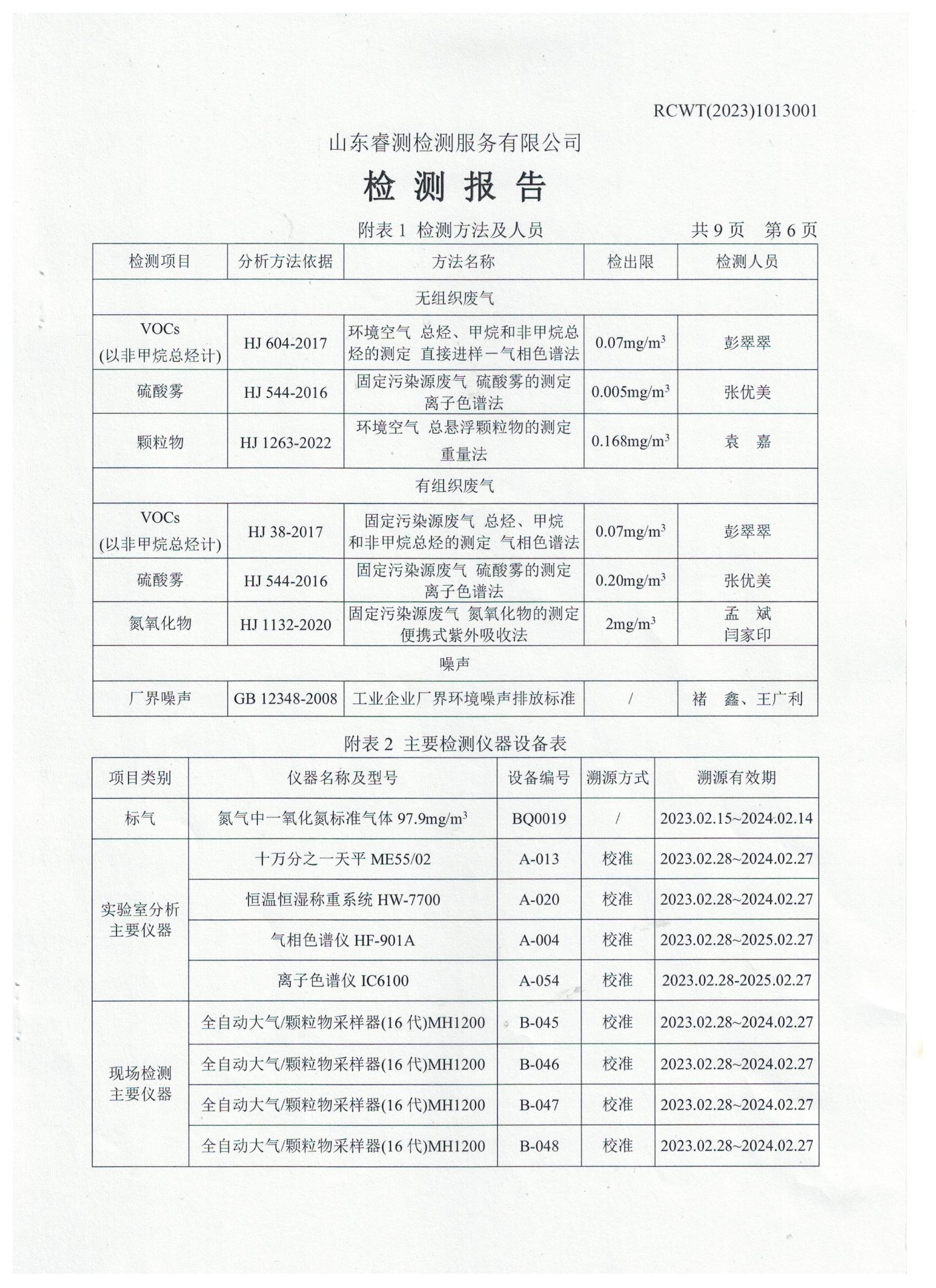 2023年第2季度(4月份)檢測(cè)報(bào)告