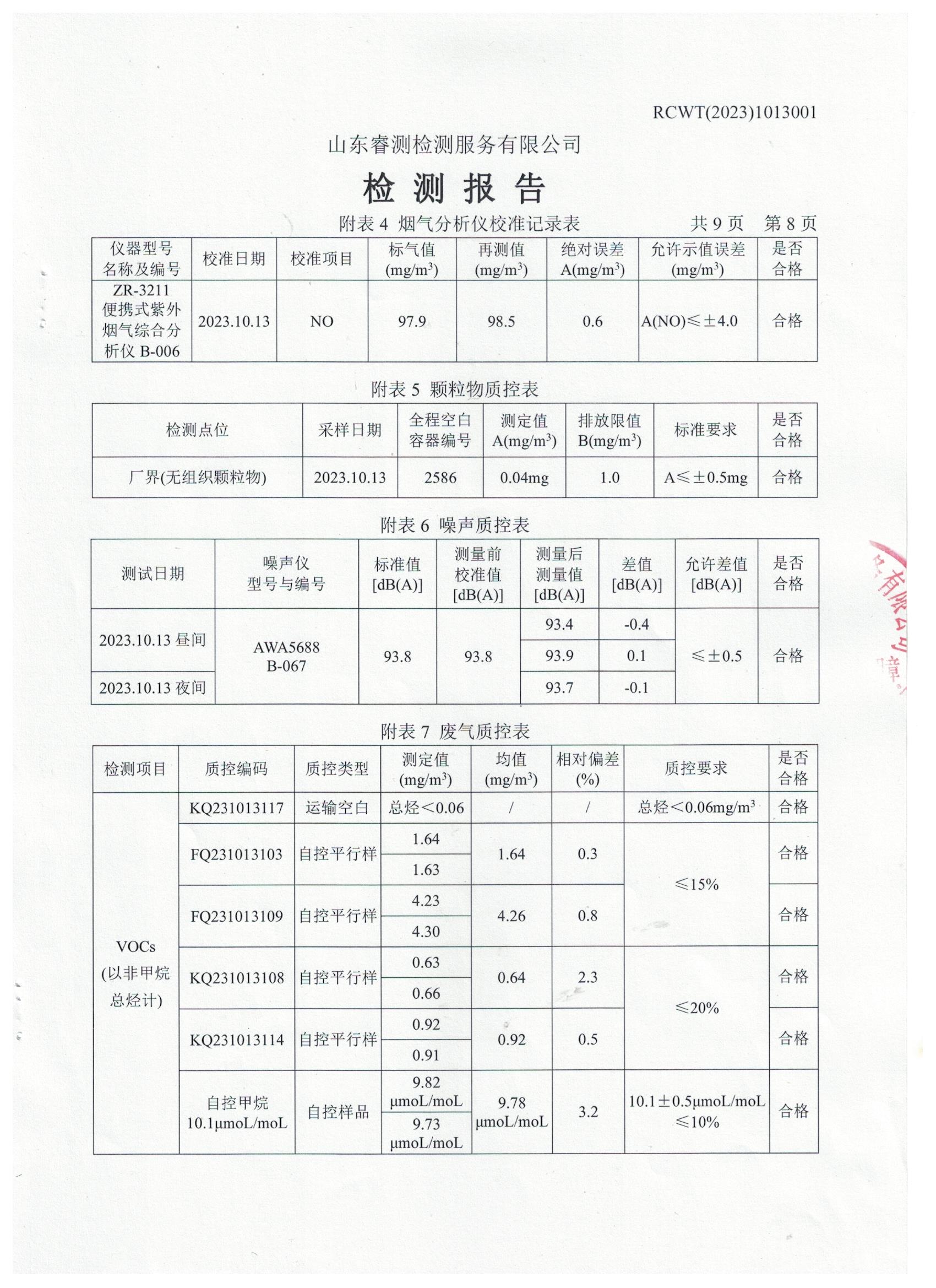 2023年第4季度(10月份)檢測(cè)報(bào)告