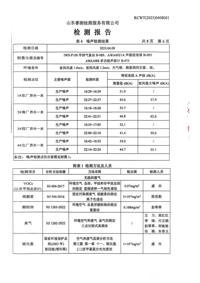 2025年4月廢氣、噪聲檢測報告