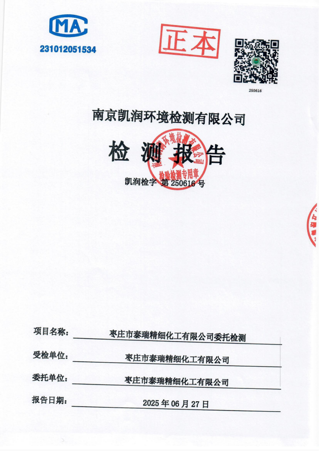 2025年泰瑞精細(xì)化工有限公司土壤檢測(cè)報(bào)告